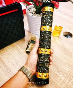 Điếu được làm từ gỗ nhóm 1A, bọc hoạ tiết chữ tượng hình Ai Cập mạ vàng 18k sang trọng sáng bóng và chống mài mòn. Điếu có khả năng kéo dài ra, thu ngắn lại rất độc đáo. Hút mát cổ, đượm khói, phê sâu. Tiếng kêu đanh giòn bà lão tai điếc giật mình!