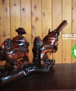 – Đục chạm từ gỗ mun Lào, một con để nõ và 1 con để miệng hút.