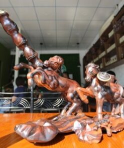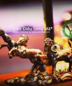 Sản phẩm được đục nguyên khối từ gỗ mun, tạo dáng 2 con ngựa đang phi về phía trước, miệng hút bọc vòng vàng mạ 18k đính kim cương nhân tạo có logo của Văn Hoá Điếu Cày®. Thân ống hút được cách điệu hình thân tre gợi nhớ truyền thuyết về chiến mã trong truyện Thánh Gióng đại phá giặc Ân.