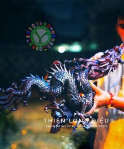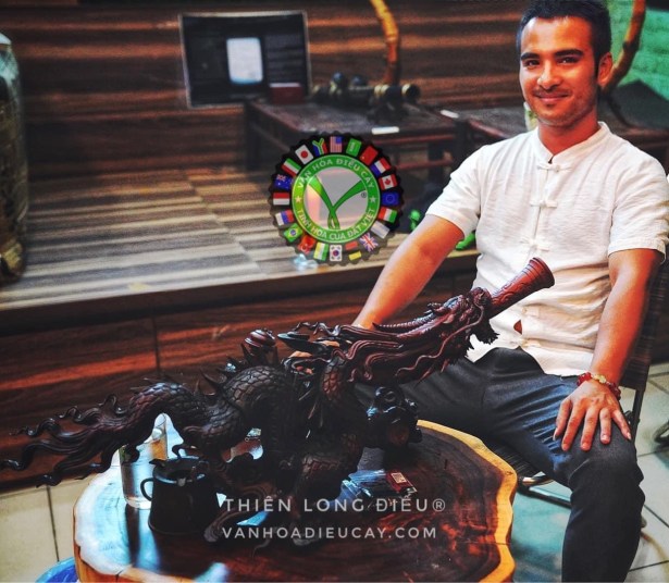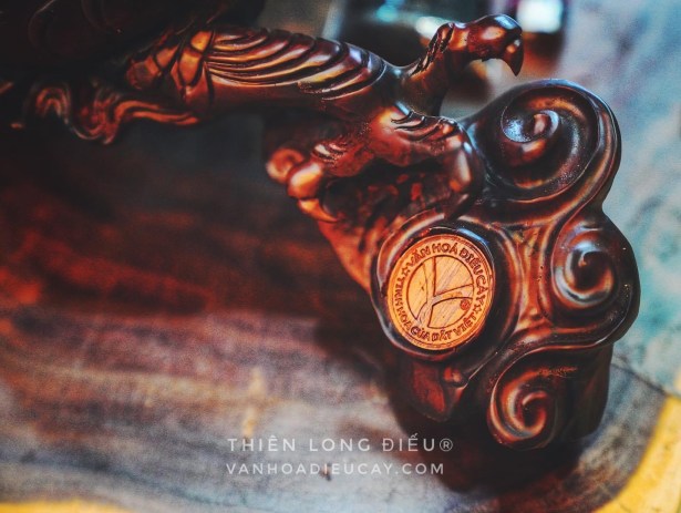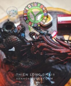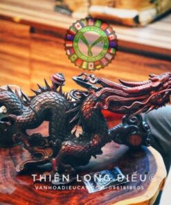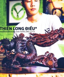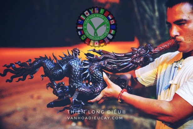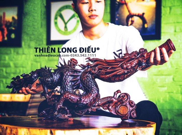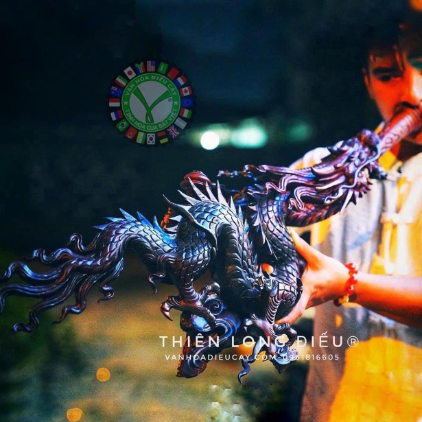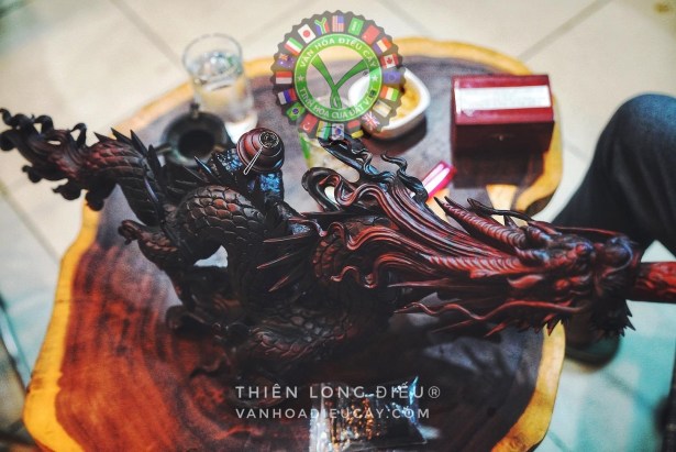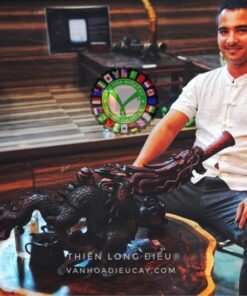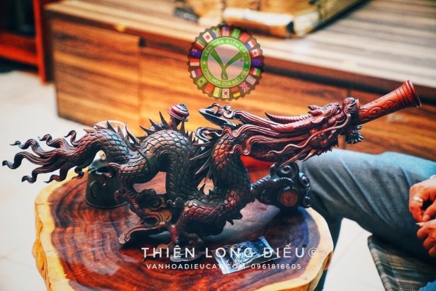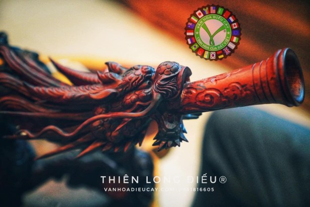 Thiên Long Điếu® Là một siêu điếu đục thủ công nguyên khối từ gỗ trắc đỏ đen. Tác phẩm có độ tỉ mỉ, chi tiết cực kỳ sắc sảo.